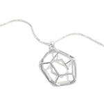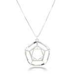 Unit price perThis large, 38mm wide sterling silver Dodecahedron Necklace is a modern, architectural design based on the classic dodecahedron shape, with angled lines rising to a height of 7.7mm in the front.