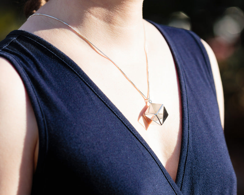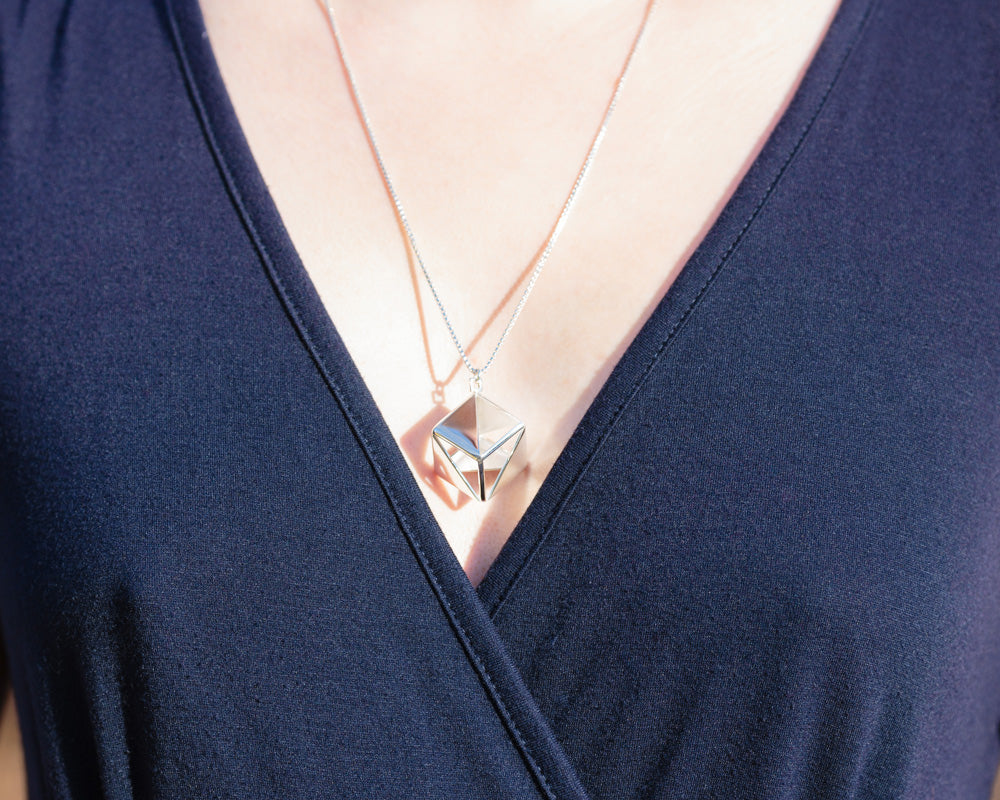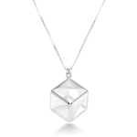 Unit price perThis sterling silver Illusion Cube necklace reflects tricks the eye with its arrangement of reflective and vanishing surfaces, making each glance a mystery.